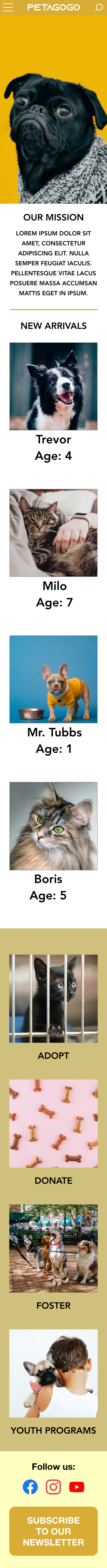 Design a responsive website to give users the ability to view available pets for adoption and make reservations for visitation.