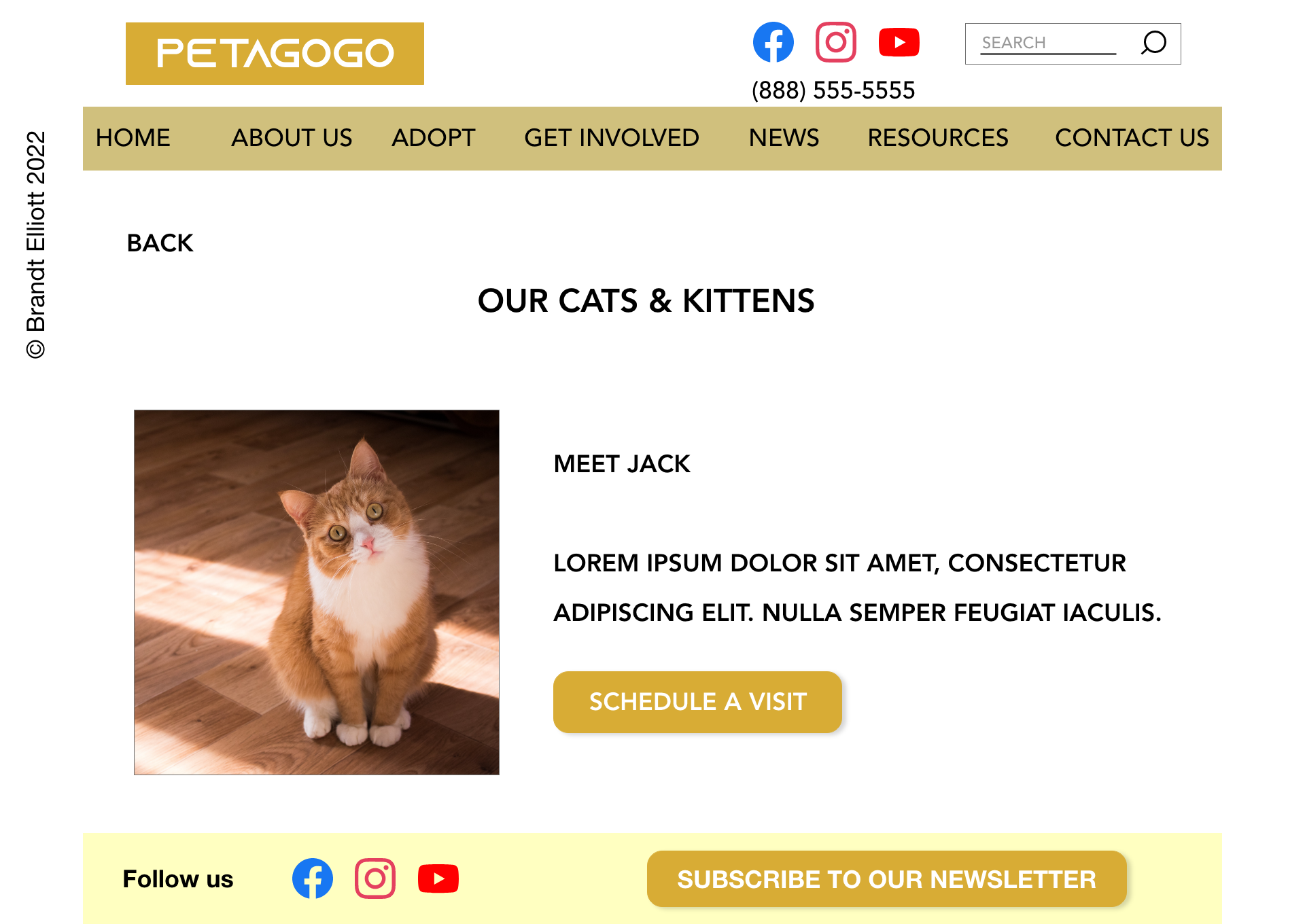 Petagogo is a responsive website that allows users to schedule a visit with an adoptable pet.