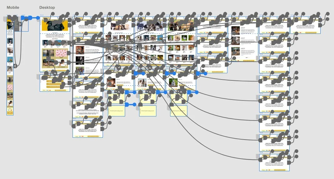 A Pet Adoption Sitemap was built to show all the different ways a user would interact with a responsive website when eager to enquire about pet adoption.